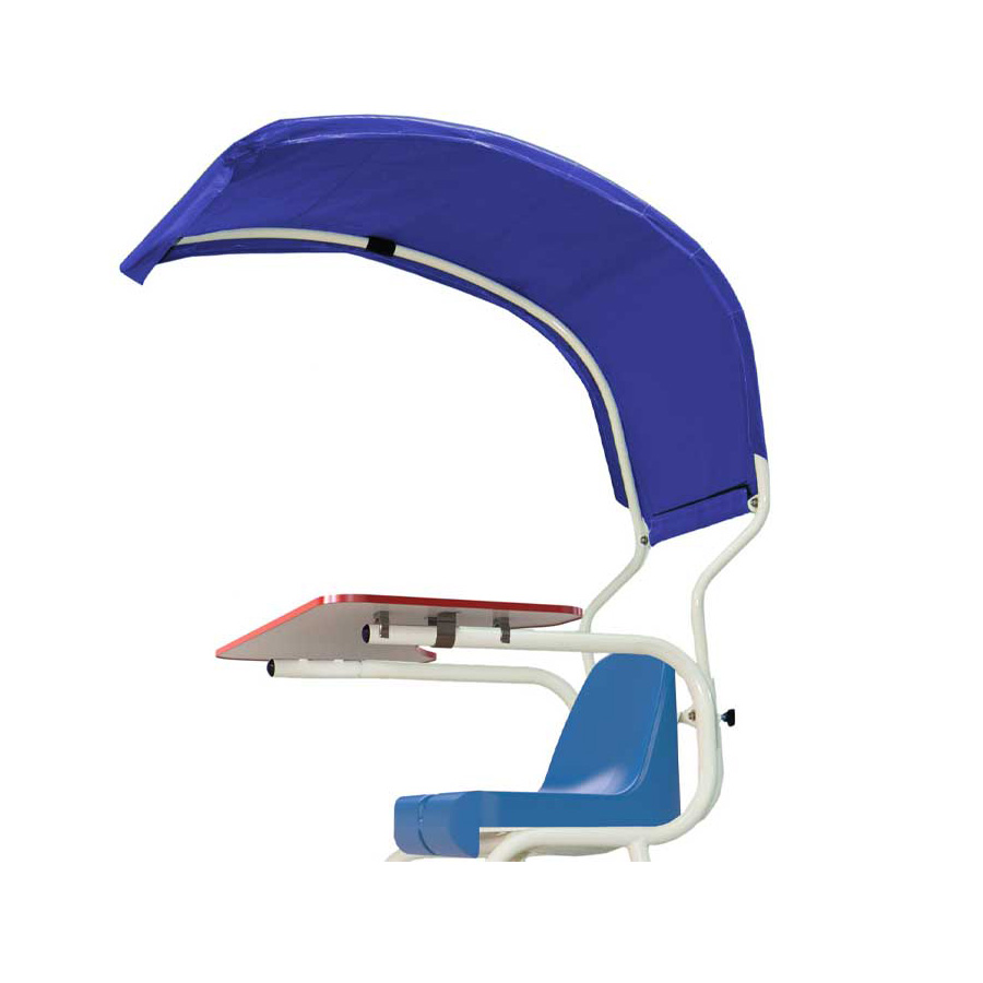 Kèm bàn gác tay, mặt ghế PP và mái che.