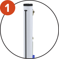 Thân trụ bằng ống thép mạ kẽm Ø90mm, sơn tĩnh điện màu trắng.