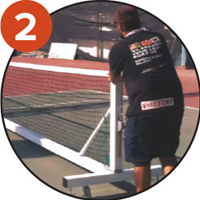 Bộ 2 trụ tennis di động, khung chính bằng ống thép mạ kẽm vuông 80 x 80mm, sơn tĩnh điện trắng. Đối trọng thép 50kg được tích hợp bên trong mỗi chân trụ.