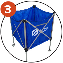 chuyển bằng 4 bánh xe, sức chứa 18 quả bóng.